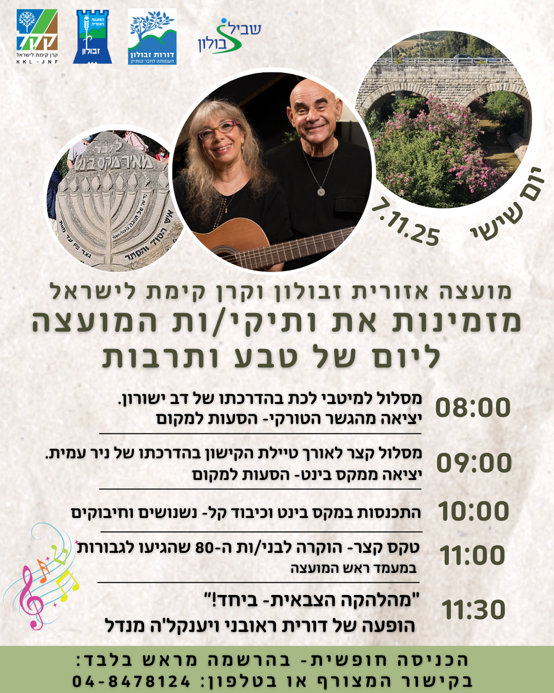 בואו ליהנות ממסלולי הליכה, טיול מודרך בשבילי קק"ל, טקס קצר ומופע מרגש של "מהלהקה הצבאית - ביחד!"