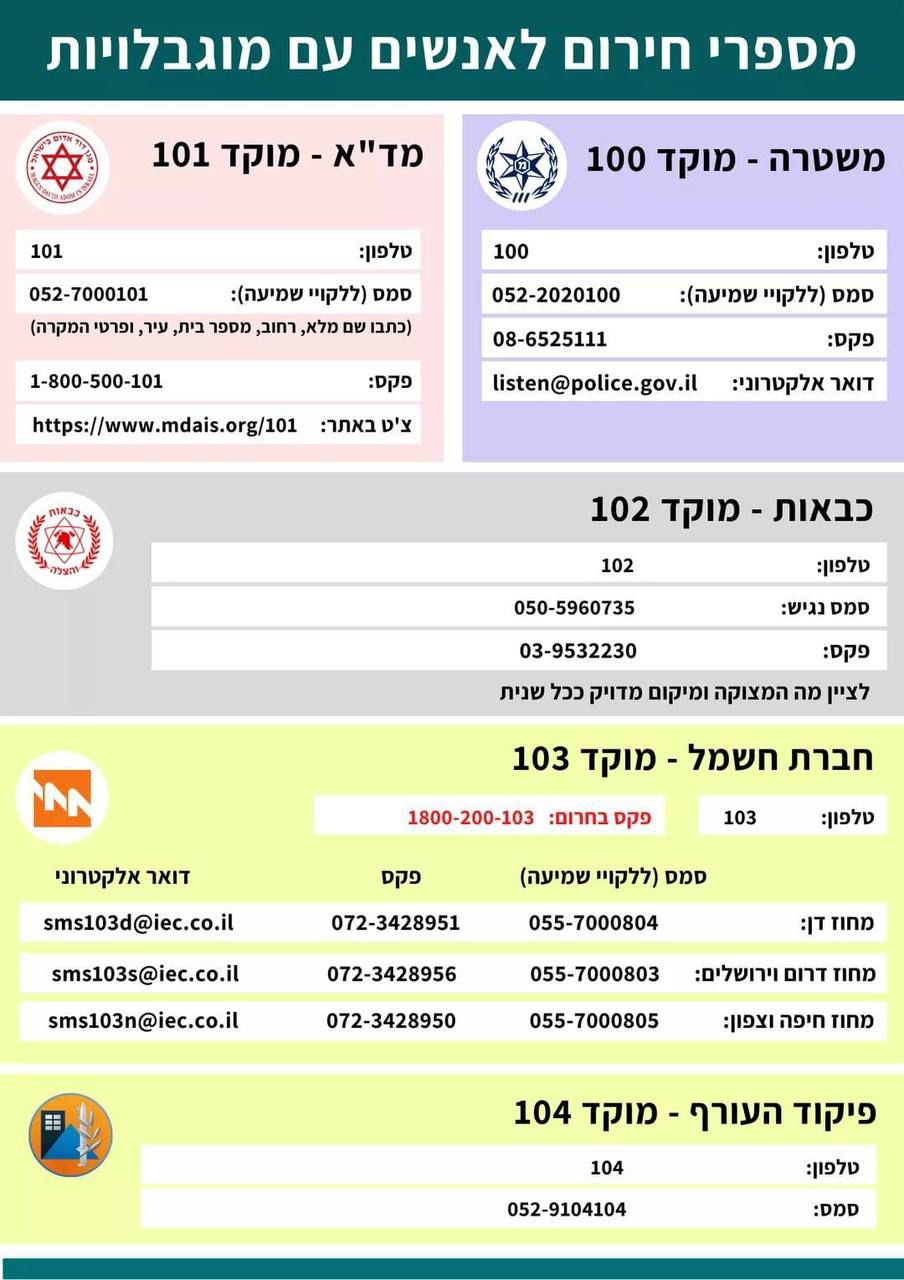 מספרי חירום נגישים לשעת הצורך