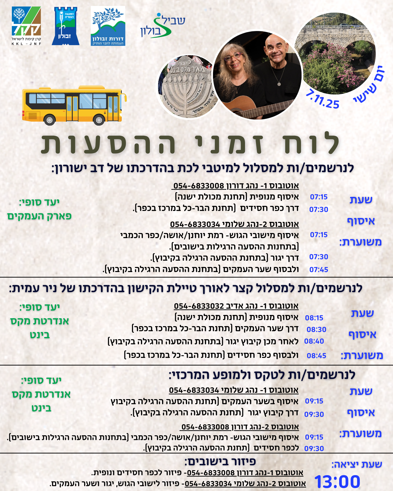 לוח הסעות לאירוע קק"ל לותיקי/ות המועצה